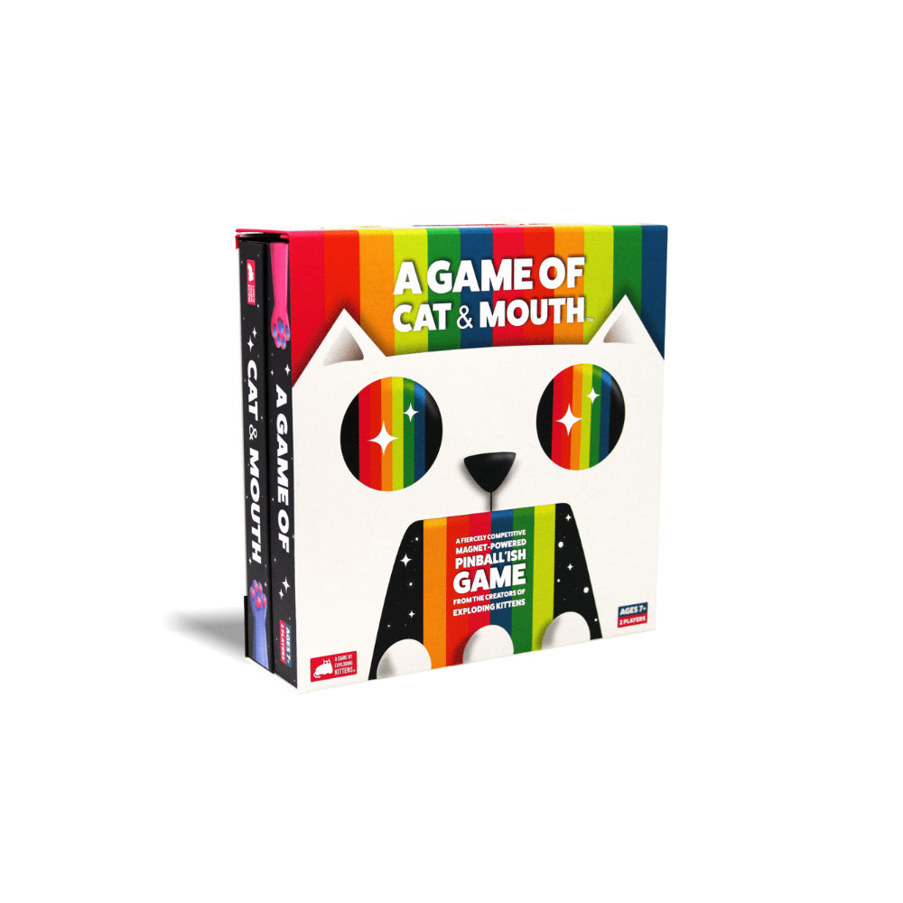 A Game of Cat & Mouth is a two-player game in which players use a magnetic cat's paw to shoot balls at one another.