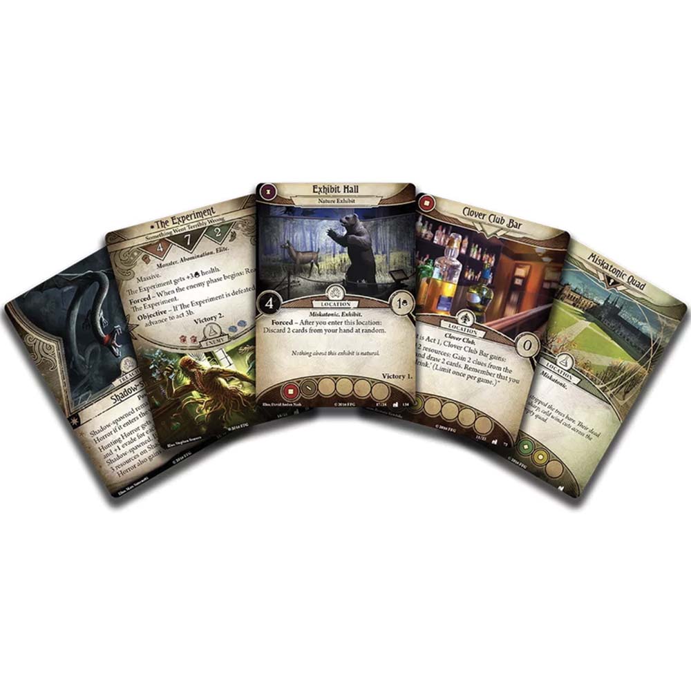 In The Dunwich Legacy Campaign Expansion, one to four investigators take up the search for the missing professors, launching an eight-scenario campaign that takes them from the notorious Clover Club and prestigious Miskatonic University all the way to the decrepit and treacherous town of Dunwich.