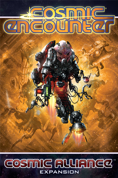 Cosmic Alliance, the third expansion set for the Fantasy Flight Games version of Cosmic Encounter, brings 20 alien races, both original and classic, exploding onto your tabletop. Players will now stand petrified by the hideous Gorgon, be baffled by the puzzle of the Schizoid, and feel obsolete before the bionics of the Cyborg.