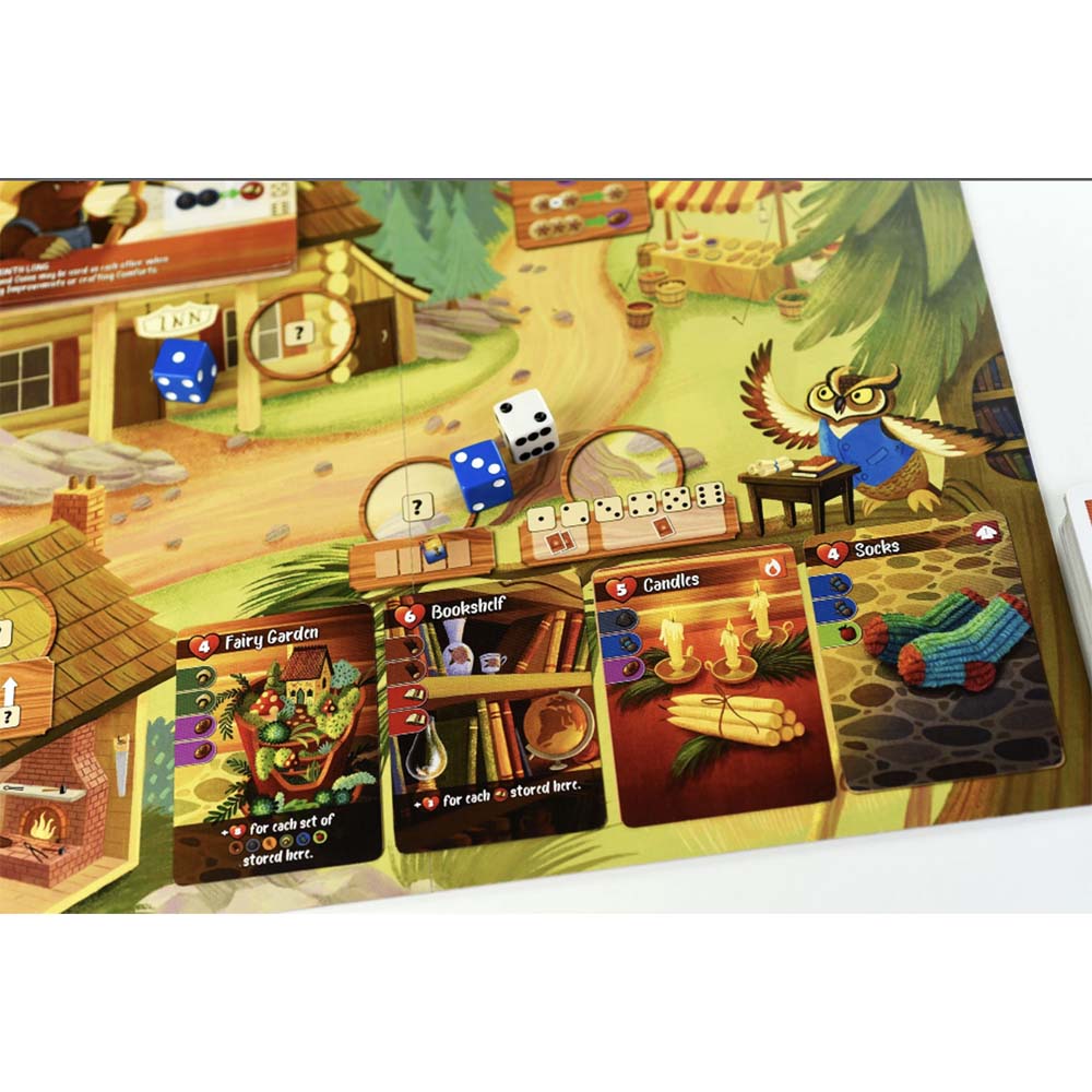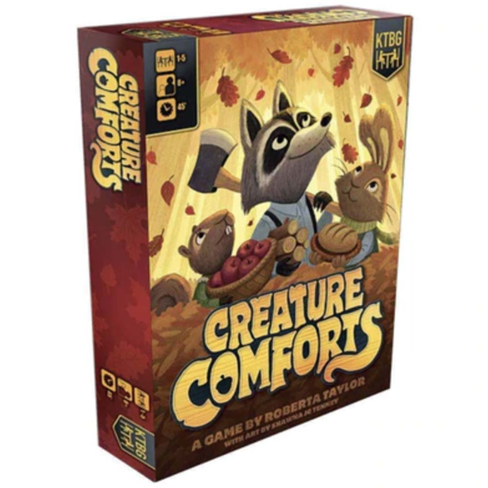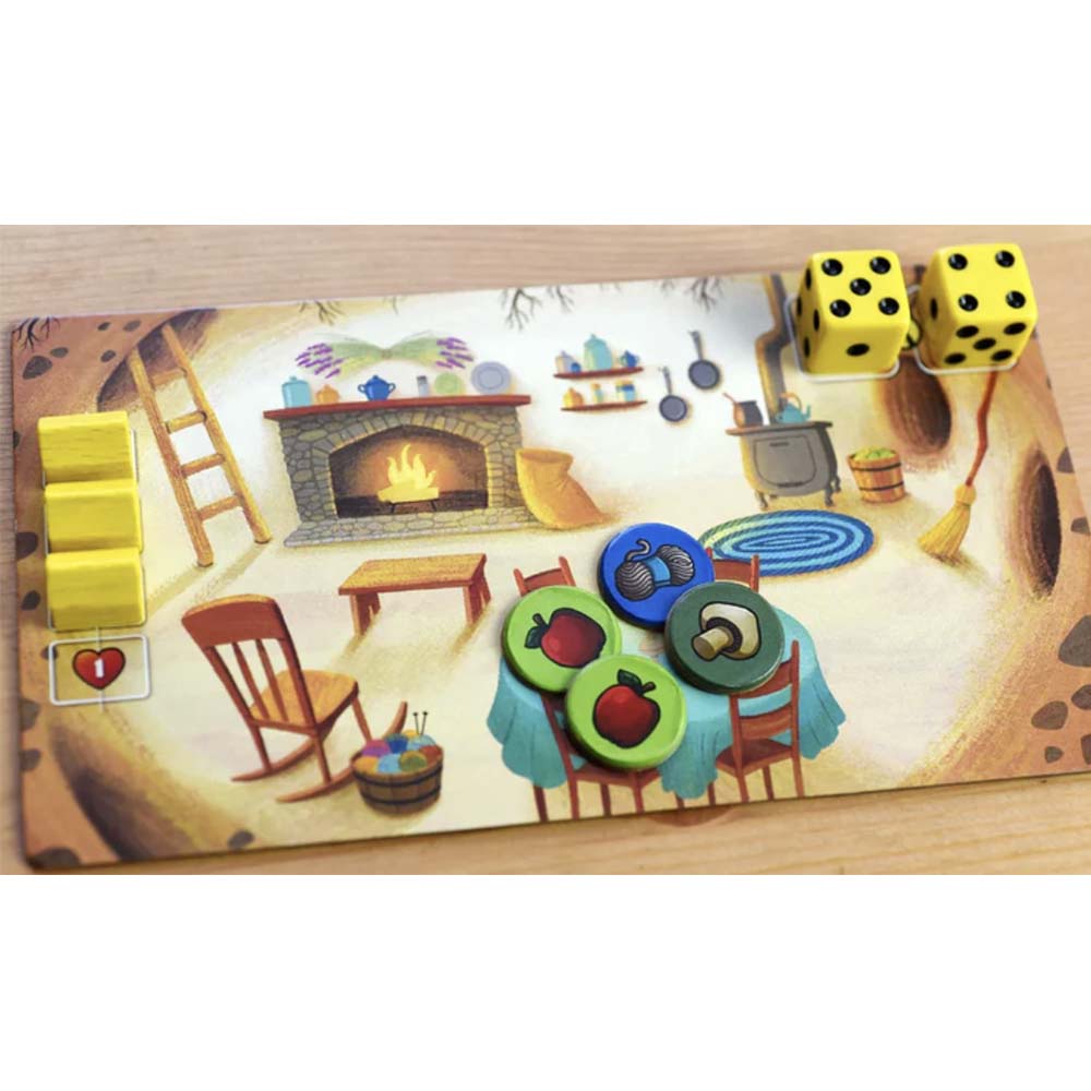 In Creature Comforts, you spend the Spring, Summer, and Fall gathering different goods from the forest and spending them to collect items that will make your home more inviting while the world outside is covered in a layer of snow. Each round you send family members out to various locations in an attempt to gain supplies. If they fall short of their goal, they’ll learn a lesson and be better prepared next time. The family that has created the most comfortable den wins the game.
