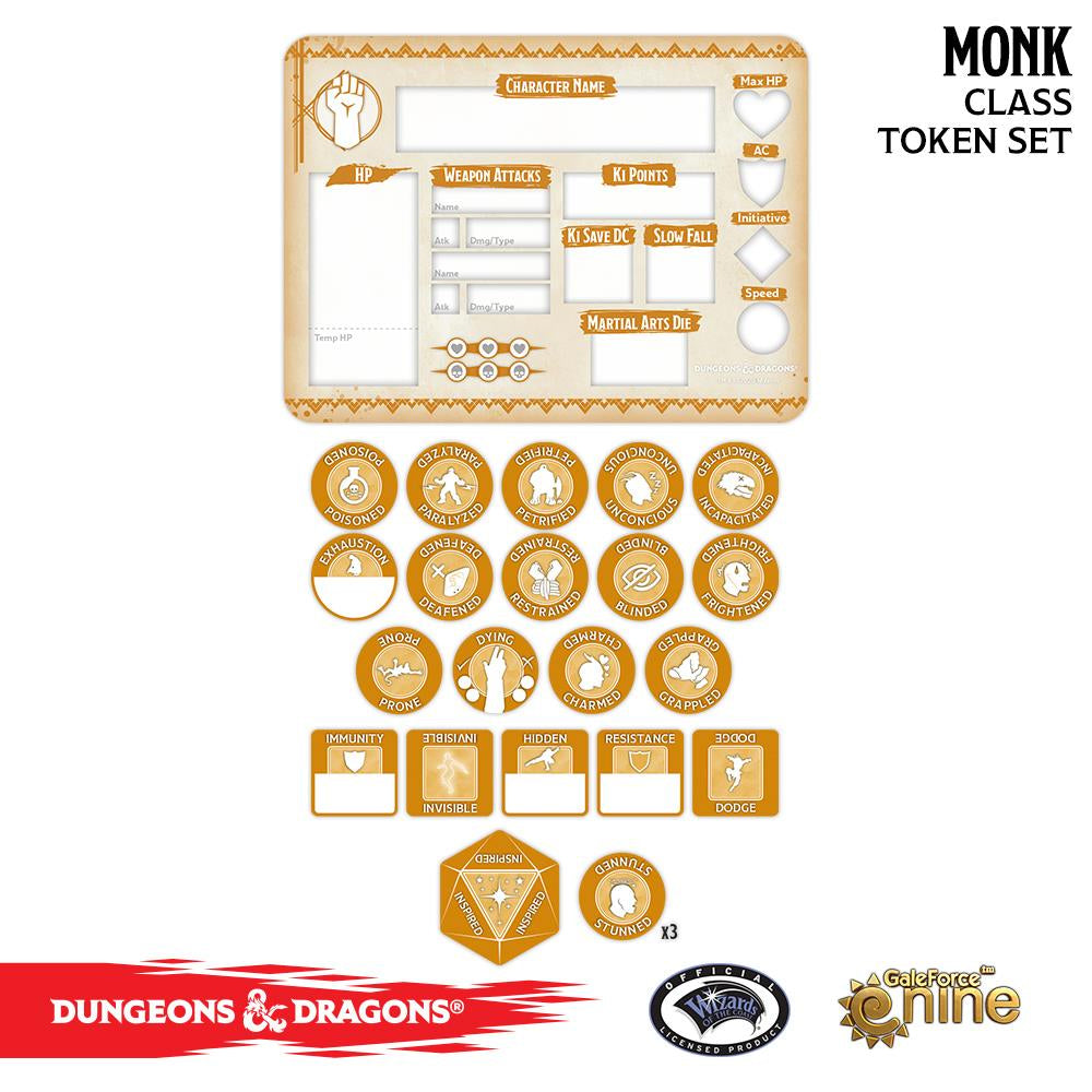 This token set is designed to allow you to easily and quickly track your character’s status effects. If your character is frightened, paralyzed or unconscious, your allies will be able to see at a glance that you are in need of help. Because all of our full-color tokens are made of durable perspex they are wet-erasable, so you can write additional information straight onto them. The combat tile provides a place for you to keep a running total of constantly changing statistics like character health and resources, all without dirtying your character sheet with eraser marks. Presented in a unique class tin, with space to add your character’s name.