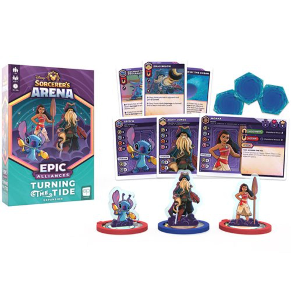 Take your combat skills in Disney Sorcerer's Arena: Epic Alliances to all new levels with the Turning the Tide expansion pack! Davy Jones, Moana, and Stitch bring new attacks and abilities true to their characters that will change the course of the Arena's already epic battles. Disney Sorcerer's Arena: Epic Alliances is the ultimate PvP tabletop game for Disney and Pixar fans and gamers where players can build teams out of Disney and Pixar heroes and villains and compete in an expandable, learn-as-you-go battle arena game.