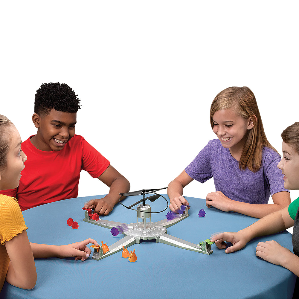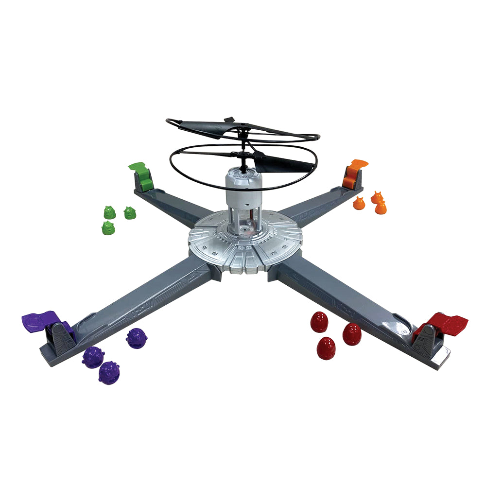 Race to launch your aliens down the ramps and land inside the drone! Watch out—there’s a delay once you make it in, so others can knock you out! If you stay in and your alien escapes when the drone lifts off, you’re one step closer to winning! Get rid of all your aliens first to win!