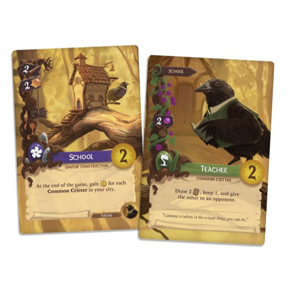 Play a Card: Build a tableau of up to 15 cards—Construction and Critter cards with unique abilities and scoring potential.