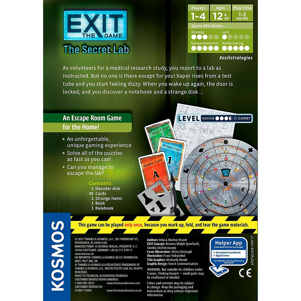 In EXIT: The Game – The Secret Lab, players must use their team spirit, creativity, and powers of deduction to crack codes, solve puzzles, collect objects, and earn their freedom bit by bit.