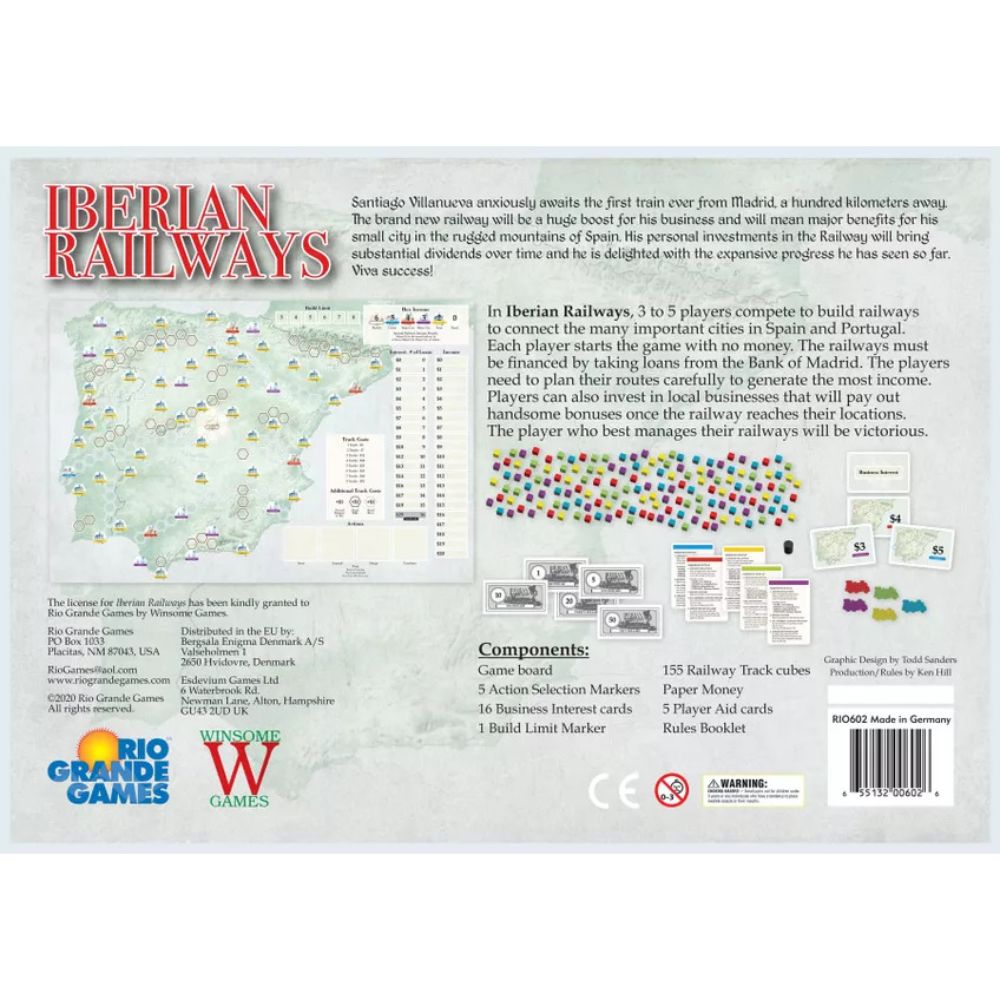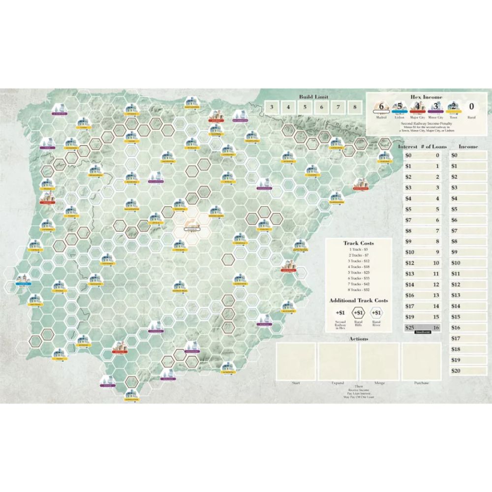 Build your empire across the Iberian Peninsula—with nothing but debt and determination! In Iberian Railways, you'll manage risk and reward in a tight, tactical game of route-building, revenue, and ruthless efficiency set in early Spain and Portugal.