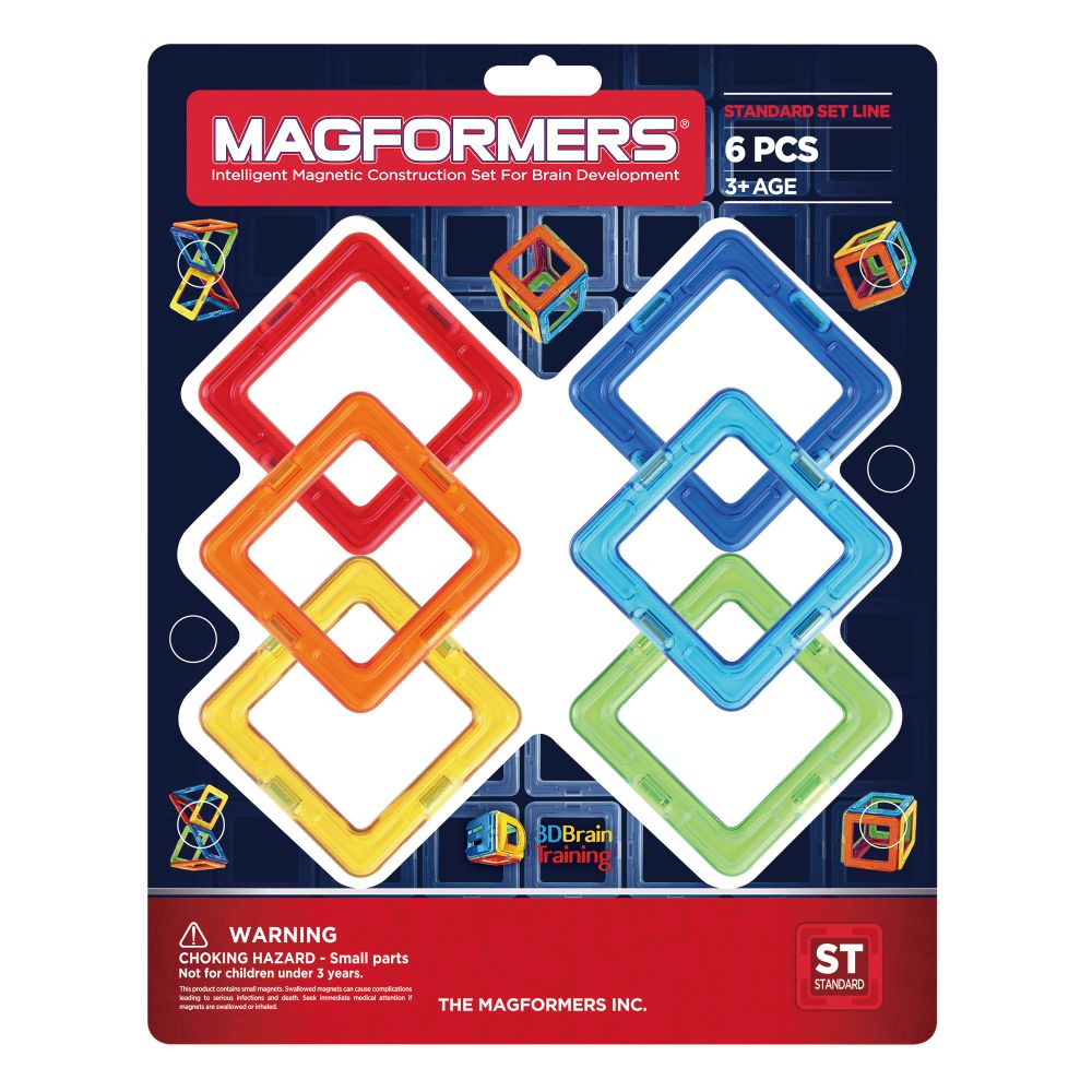 Design and build cool shapes and designs with this starter set of six magnetic squares. See what the magic is all about. Complete with 6 squares, fully compatible with all brand construction sets. Magnetic pieces contain rotating magnets in every edge, so always connect.