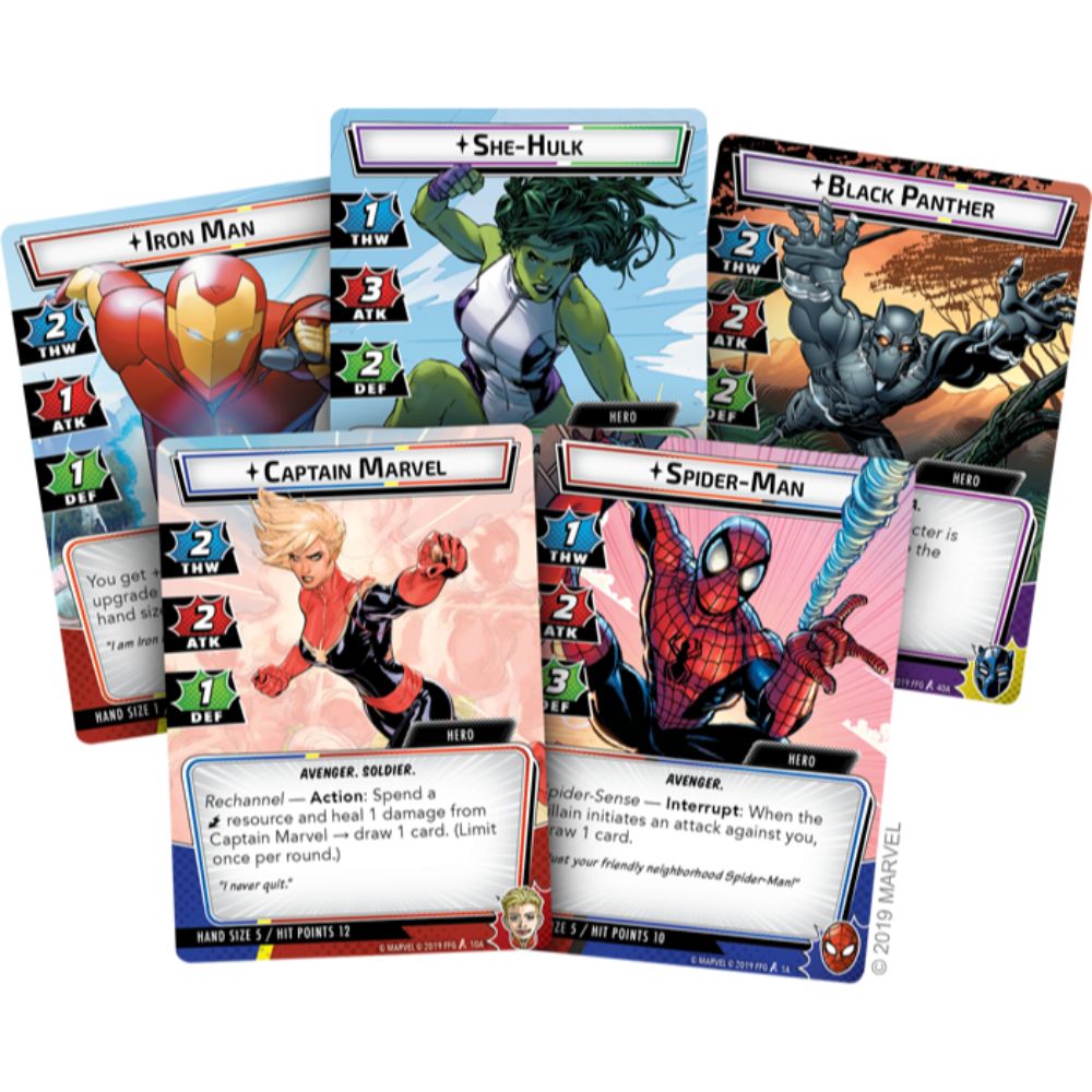- Play as Iconic Heroes: Iron Man, Black Panther, Captain Marvel, She-Hulk, and Spider-Man included in the core box.