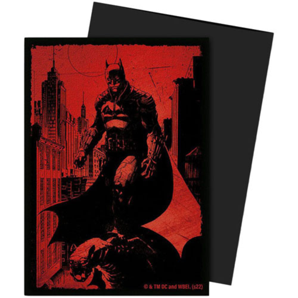Impactful 'The Batman' black & red artwork on the back of black matte sleeves with an ultra-clear front.