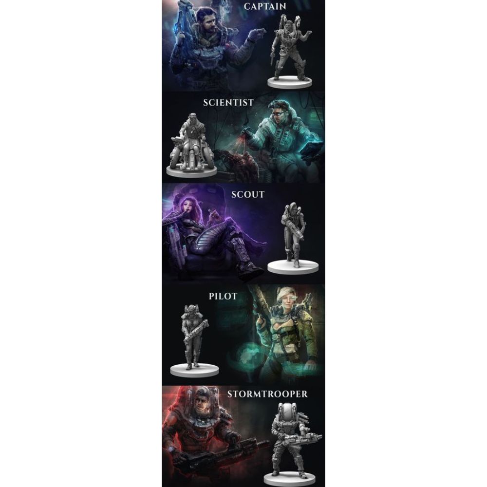 Playing Nemesis will take you into the heart of sci-fi survival horror in all its terror. A soldier fires blindly down a corridor, trying to stop the alien advance. A scientist races to find a solution in his makeshift lab. A traitor steals the last escape pod in the very last moment. Intruders you meet on the ship are not only reacting to the noise you make but also evolve as the time goes by. The longer the game takes, the stronger they become. During the game, you control one of the crew members with a unique set of skills, personal deck of cards, and individual starting equipment. These heroes cover all your basic SF horror needs. For example, the scientist is great with computers and research, but will have a hard time in combat. The soldier, on the other hand...