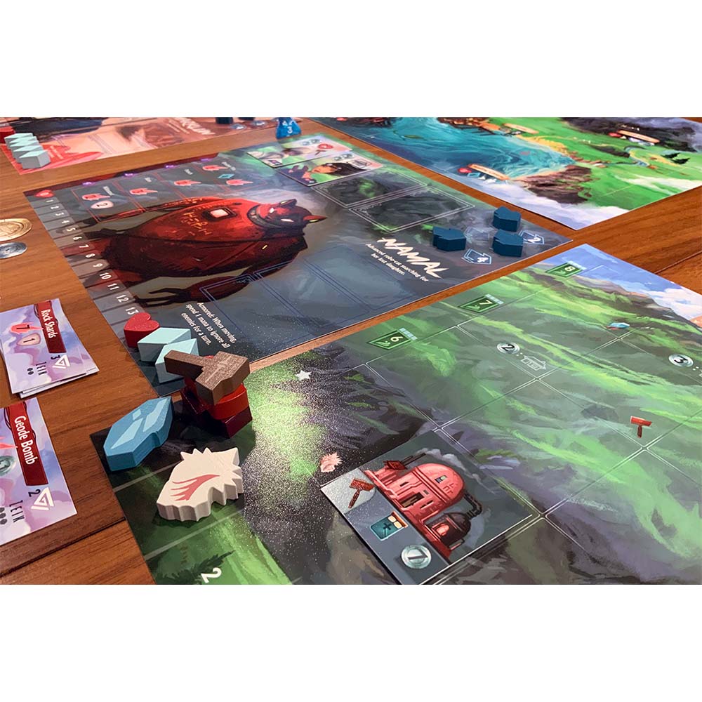 In Now or Never, you and up to three friends compete to best rebuild your ancestral village and guide the rest of the villagers on their journey home. Although the creatures of the meteorite have lost much of their strength, many of them remain, and you must fight them off to protect traveling villagers. Now or Never is the third game in the Arzium storybook series that includes Above and Below and Near and Far.