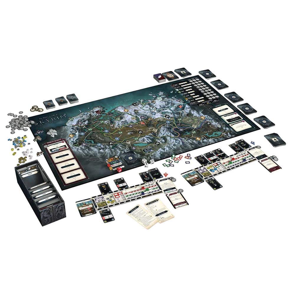 The Elder Scrolls V: Skyrim – The Adventure Game is a 1-4 player co-operative game of adventure and exploration across Skyrim. Players take the roles of heroes involved in epic quests, working together to defeat their enemies and exploring the vast expanse of Skyrim. You will be able to choose character miniatures like the Khajiit, Nord, or High Elf; plan your strategy with weapons or spells; and fight your way through forgotten mines, Draugr-infested tombs, or ancient Dwemer cities to find ancient treasures and increase your power.