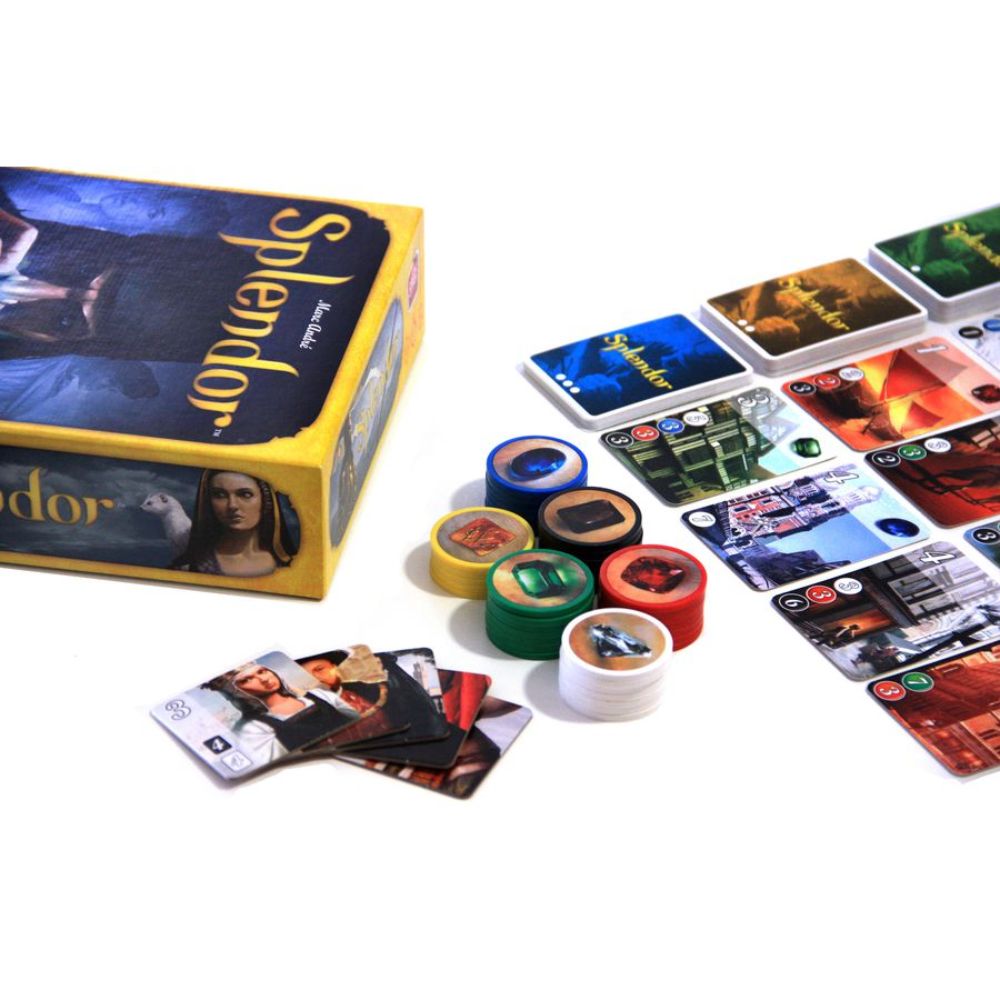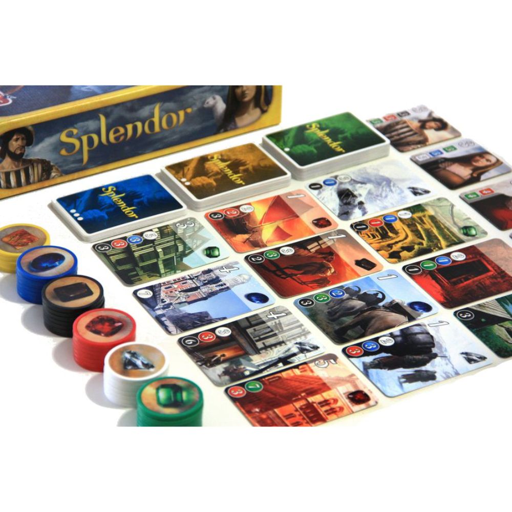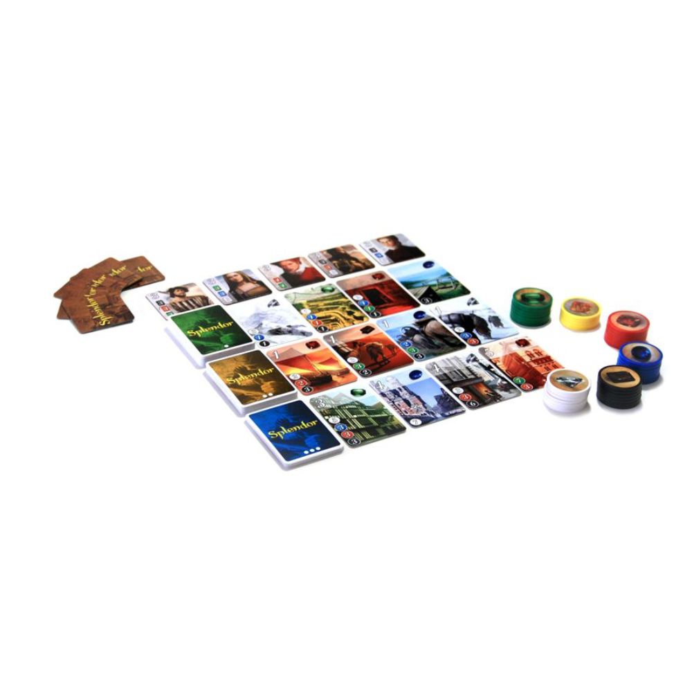 Splendor is a game of chip-collecting and card development. Players are merchants of the Renaissance trying to buy gem mines, means of transportation, shops—all in order to acquire the most prestige points. If you're wealthy enough, you might even receive a visit from a noble at some point, which of course will further increase your prestige.