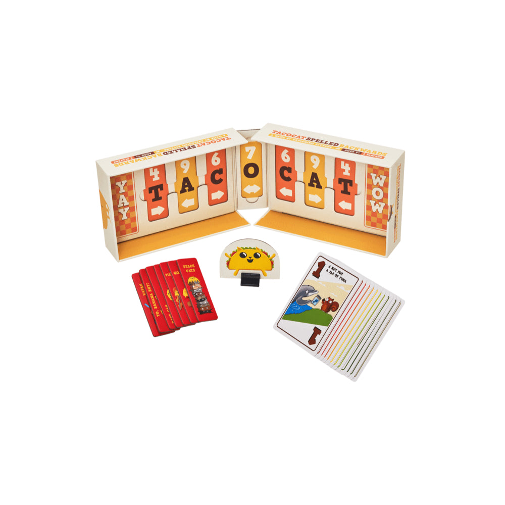Tacocat Spelled Backwards is deceptively simple and surprisingly strategic, making it perfect for both quick fun and competitive rematches. With bold visuals, a clever final-card mechanic, and irresistible charm, this little palindrome packs a lot of punch.