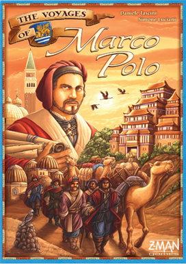 In The Voyages of Marco Polo, players recreate this journey, with each player having a different character and special power in the game. The game is played over five rounds. Each round, the players roll their five personal dice and can perform one action each turn with them. The five main actions are shown on the bottom part of the board: