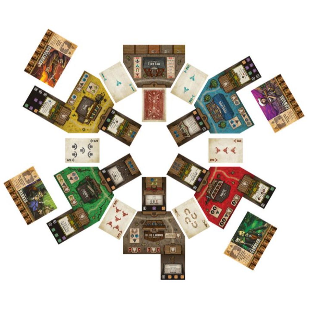 Every round, players place posse members on town locations, leveraging unique actions and forming three-card poker hands using cleverly dealt shared cards. It’s a game of tactical positioning, resource management, and bluffing — where Law, Money, and Force are your keys to victory. Do you have what it takes to outplay your rivals and build the most lucrative empire?