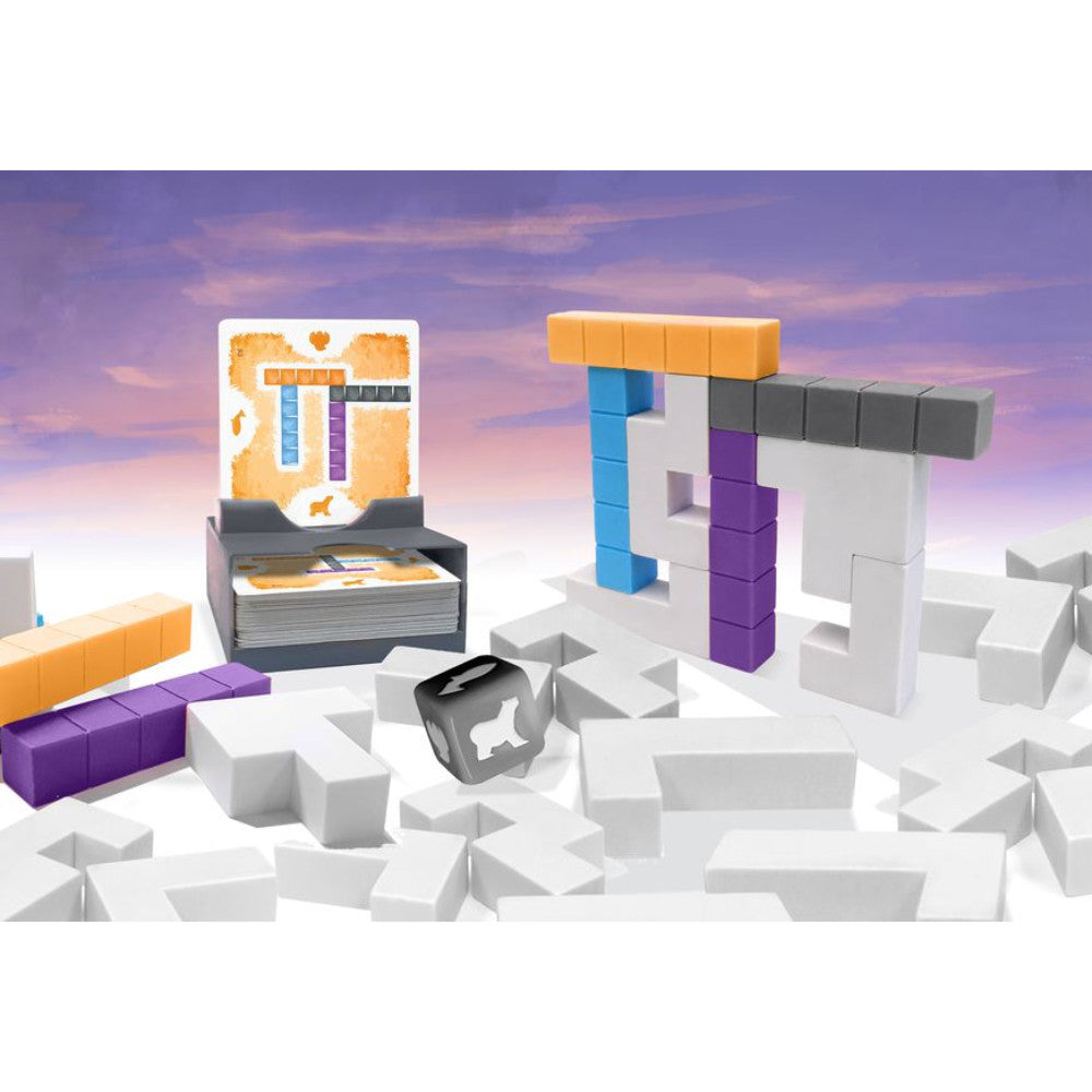 In the Inuit language, "tukilik" is used to define an object that carries a message, and the northern landscapes are densely populated with such objects. The most well known of these are the inukshuk, that is, structures of rough stones traditionally used by Inuit people as a landmark or commemorative sign, with the stones often being stacked in the form of a human figure.During each turn in Tuki, you attempt to construct an inukshuk based on the die face rolled using your stones and blocks of snow. Players have only a limited number of pieces with which to construct the inukshuk, so you'll need to be creative and use the three-dimensional pieces in multiple ways, such as to counterbalance other pieces or even build on top of existing pieces. A solution always exists — you just need to discover it!You can choose from two levels of difficulty when playing Tuki to level the playing ground between newcomers and experts. Be swift, yet precise, and transform your stones into messengers of the north...