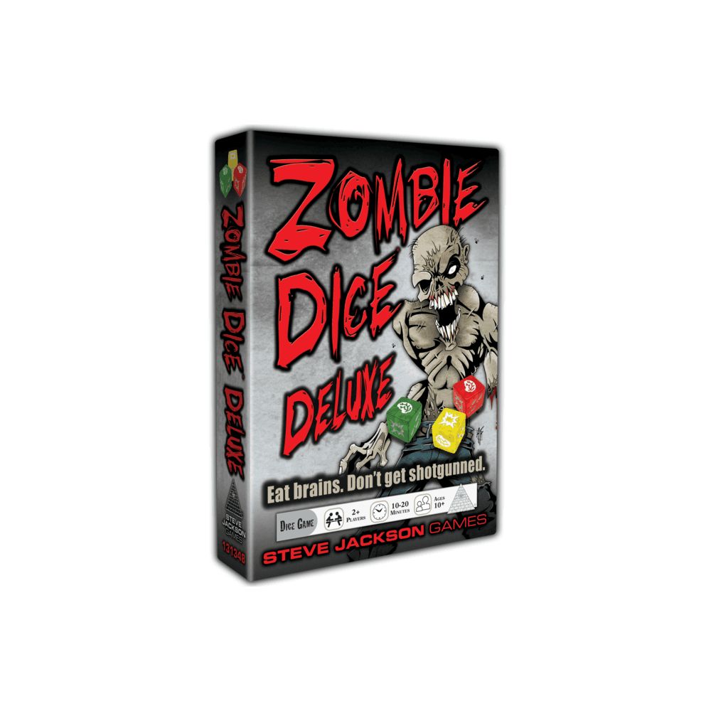 This deluxe version includes a score pad and the plastic Zombie Dice Brain Case.
